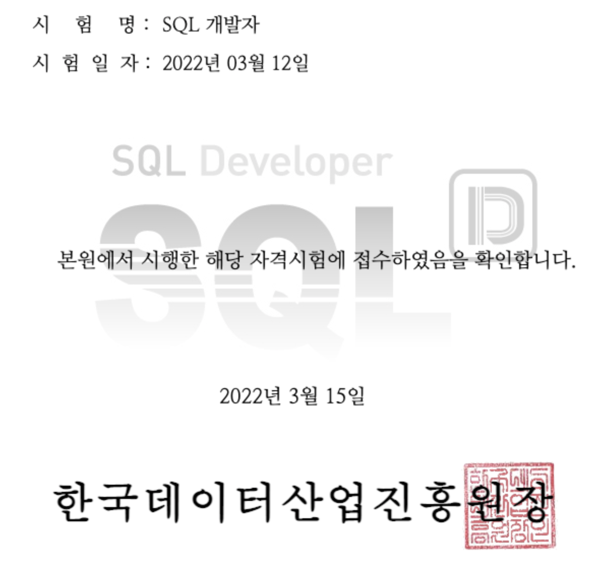 SQLD로 접수하게 됐다
