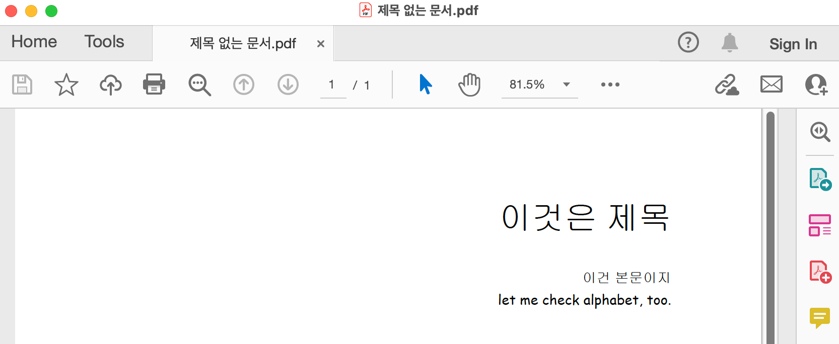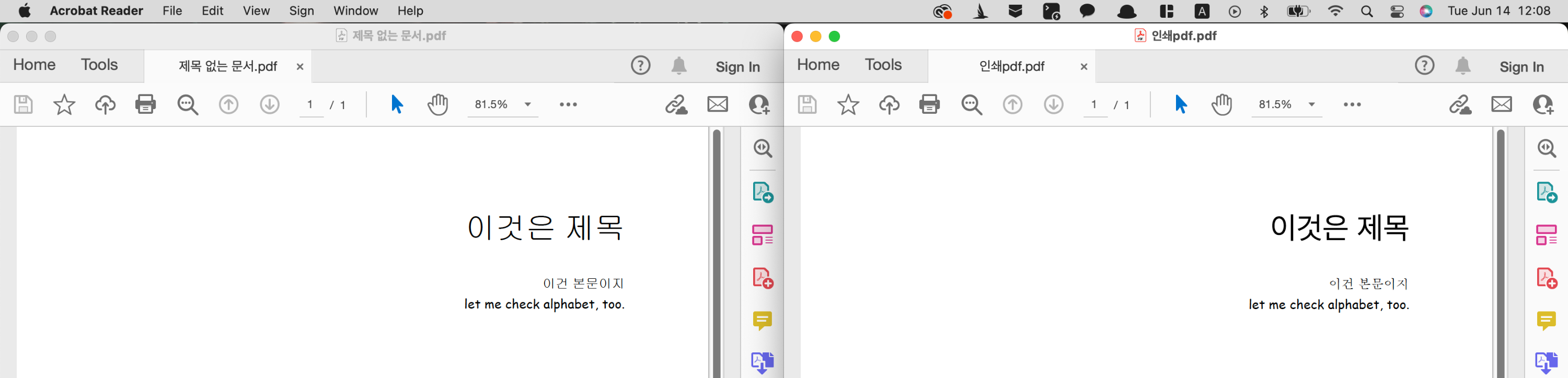 저장된 pdf를 보니 폰트가 달라진 것이다