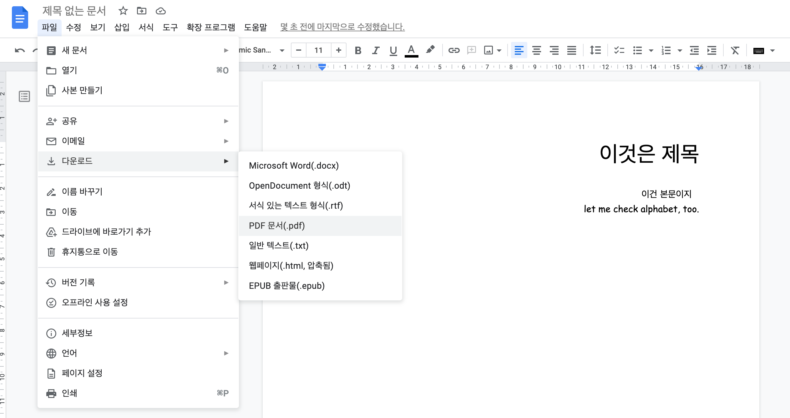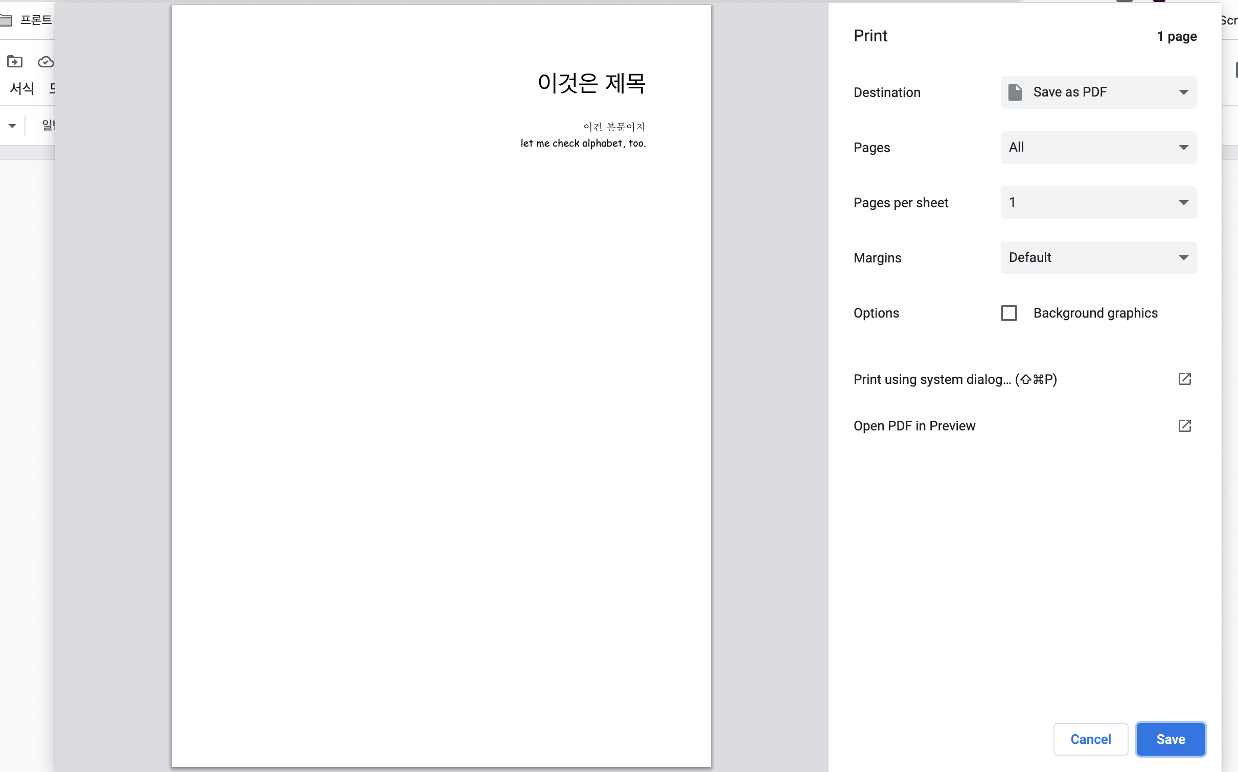 - 구글 문서 폰트 유지한 채 pdf로 저장하기2022년 06월 14일 12시 21분 05초에 업로드 된 글입니다.작성자: sue24