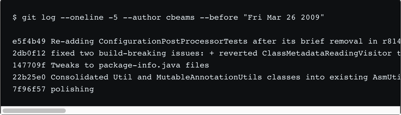 아마 당신은 git log나 관련 도구를 사용하는 데 많은 시간을 기울이지 않았을 겁니다.